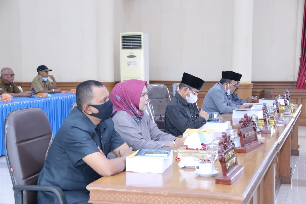 Juru Bicara DPRD Zainir dari Fraksi Amanat Kebangkitan Nasional menyampaikan Rekomendasi DPRD Terhadap LKPJ 2020. Secara umum karena Covid-19, di OPD Pemko ada terjadi refokusing anggaran, sehingga pelaksanaan kegiatan berkurang.