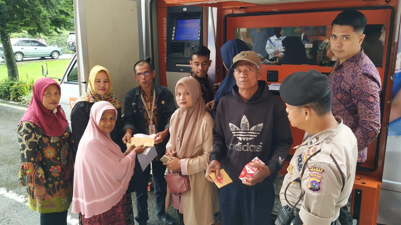 Penyaluran bantuan langsung dicairkan melalui layanan gerak BNI yang sudah disiapkan oleh BNI 46 di halaman Kantor Eks. Balaikota Bukik Sibaluik.