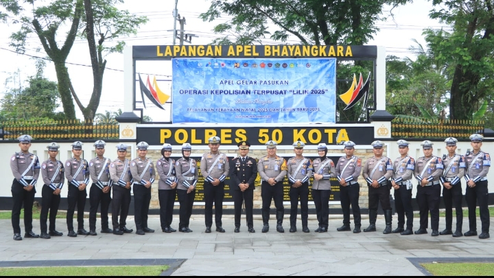HmsPolrs50Kota, Kliksumatra.com — Kepolisian Resor (Polres) 50 Kota melaksanakan Apel Gelar Pasukan Operasi Lilin 2025 yang digelar secara serentak di seluruh wilayah Indonesia, pada Jumat, 19 Desember 2025, bertempat di Lapangan Apel Bhayangkara Polres 50 Kota.