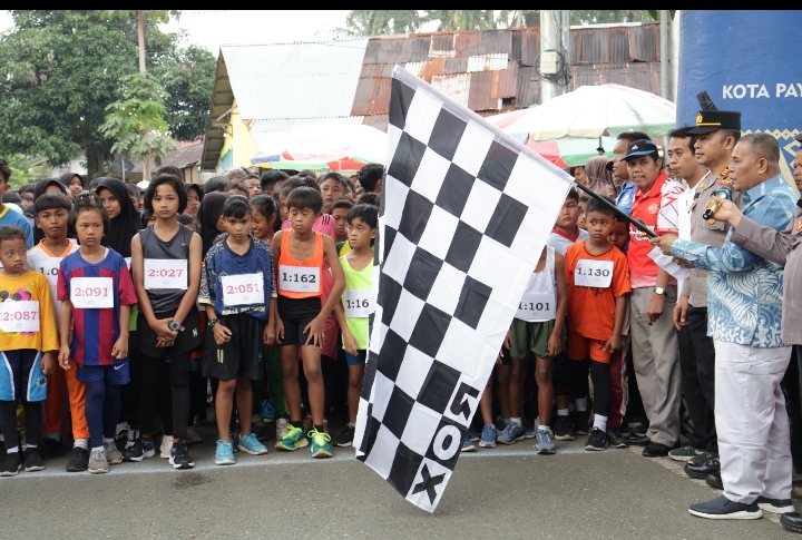Payakumbuh,Kliksumatra. Com – Ratusan siswa Sekolah Dasar (SD) di Kota Payakumbuh mengikuti lomba lari 5k yang dilaksanakan Kelompok Kerja Guru Olahraga (KKGO) Gugus 3 Barat dan Selatan Kota Payakumbuh, Kamis (20/06/2024)