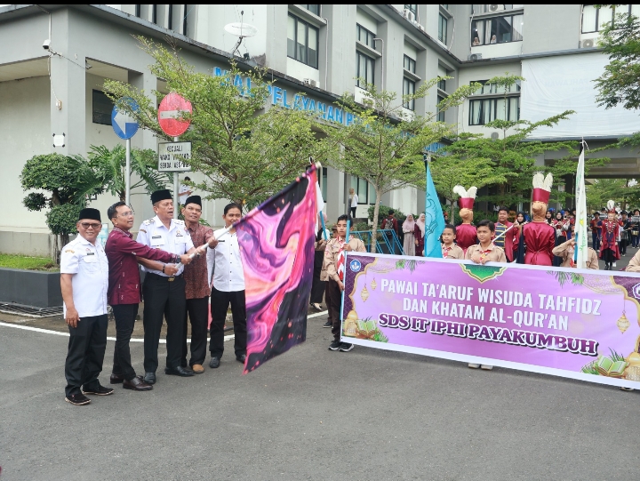 Payakumbuh,Kliksumatra.com — Wali Kota Payakumbuh, Zulmaeta melalui Wakil Wali Kota, Elzadaswarman melepas pawai ta’aruf siswa-siswi SDS IT IPHI dari halaman Kantor Wali Kota, Rabu (15/4/2026) pagi. Pawai tersebut dirangkaikan dengan pengumuman wisuda tahfizd dan khatam Al-Quran.