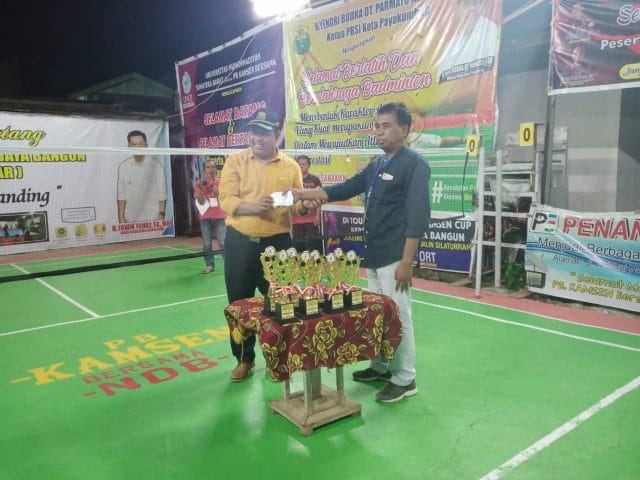 Payakumbuh, Kliksumatra.com – Tournamen Badminton U 90 Kamsen Bersama di Kelurahan Nunang Daya Bangun secara resmi ditutup oleh Ketua PBSI Kota Payakumbuh YB. Dt. Parmato Alam, Rabu (7/4) malam.